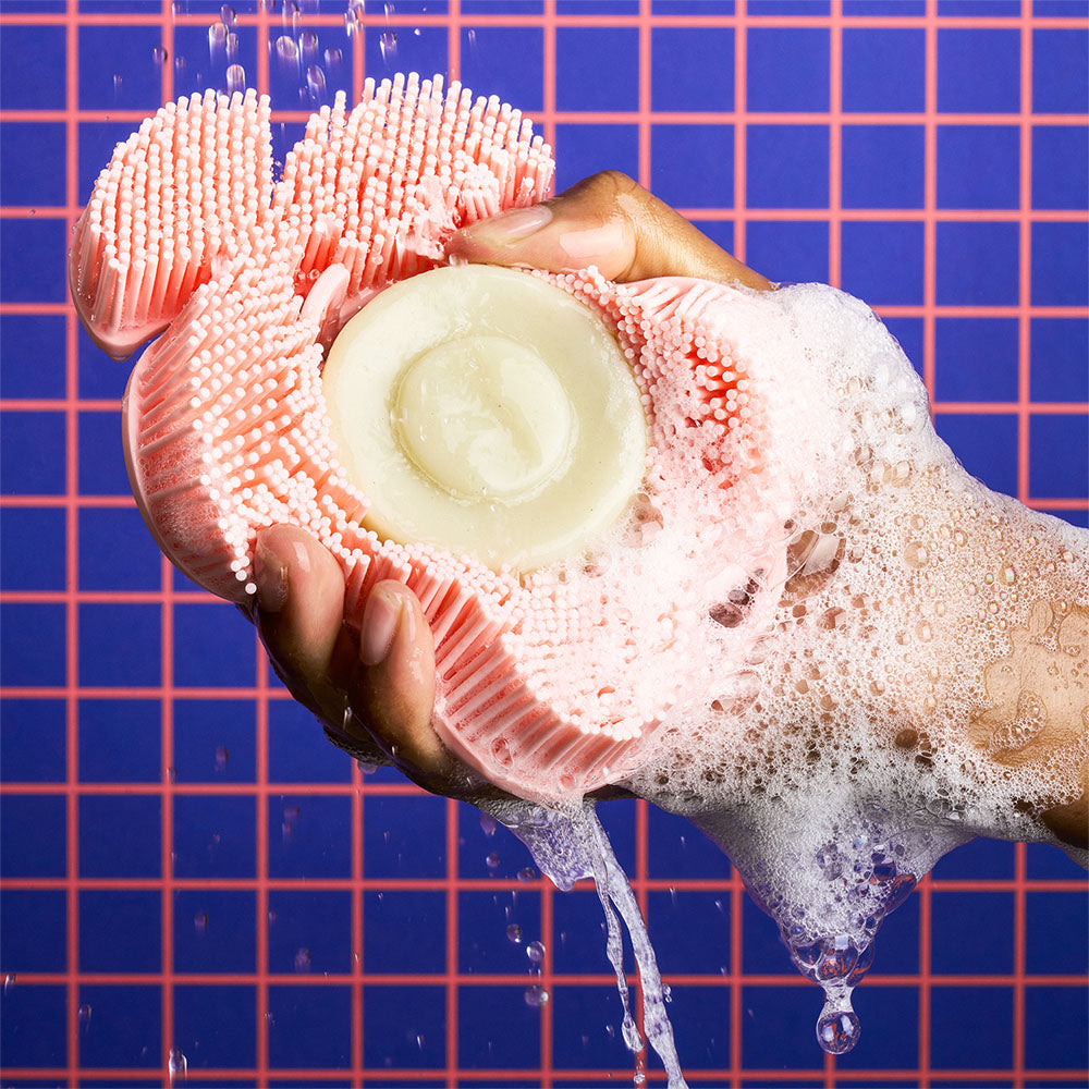 Since there's no standard soap shape (and off the shelf bars can't lock securely into a scrubber) we created our own. That's how Smoosh system was born: a perfectly engineered pairing of scrubber and soap.