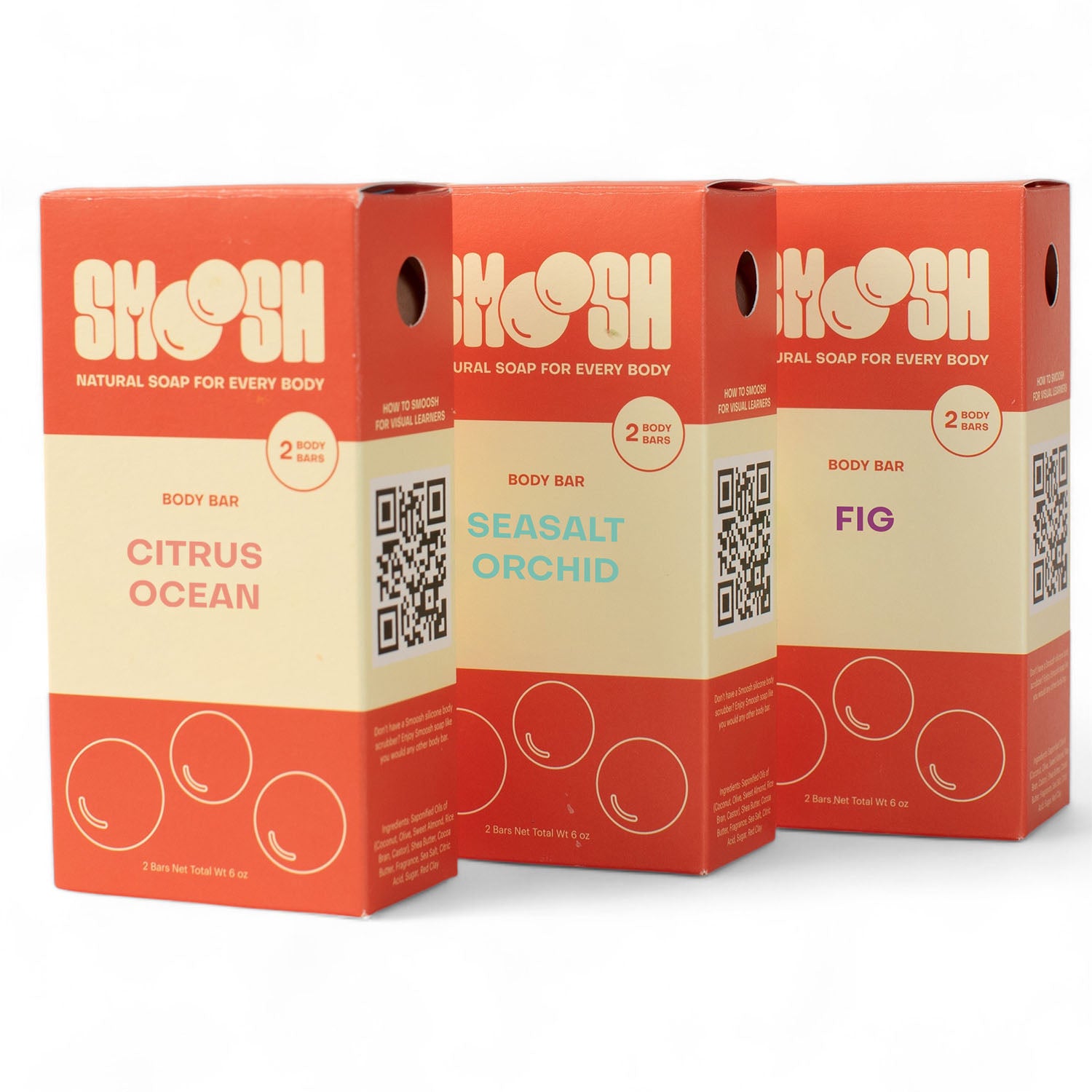 Since there's no standard soap shape (and off the shelf bars can't lock securely into a scrubber) we created our own. That's how Smoosh system was born: a perfectly engineered pairing of scrubber and soap.