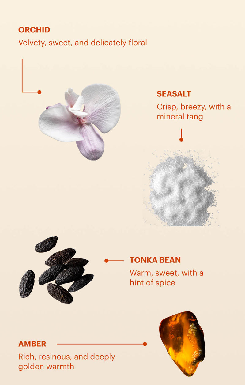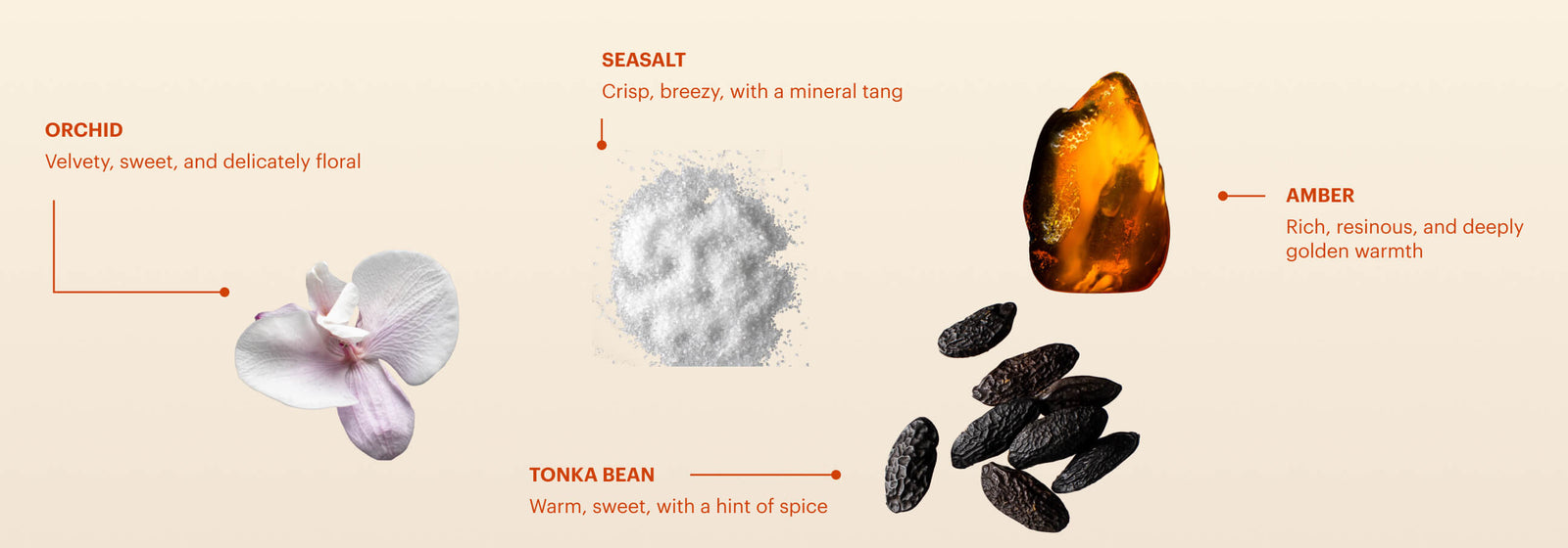 Notes of orange, sea salt, amber, and tonka bean. This sweet, velvety scent will ensconce you with it's warm undertones. Sink. Right. In. Two 3 oz bars per pack (6 oz total weight).